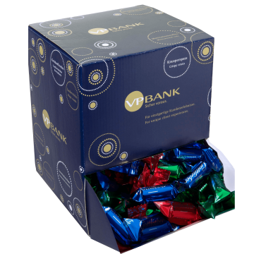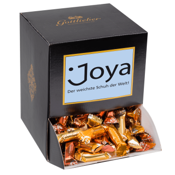 Ein ideales Geschenk für ganze Firmen, Teams und der perfekte Begleiter für jeden Kundenempfang. Begeistern Sie Ihre Kund:innen, Partner:innen und Mitarbeitenden mit Mini-Hüppen im Tischdispenser bei jeder Tasse Kaffee. Entwerfen Sie Ihre eigene Etikette oder den gesamten Dispenser nach Ihren Ideen. Gerne verpacken wir die knusprigen Mini-Hüppen auch in einer individuell bedruckten Folie.