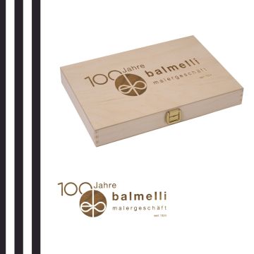 «Für unser 100-jähriges Firmenjubiläum haben wir uns entschieden, personalisierte Hüppen bei Gottlieber anfertigen zu lassen. Dank der hervorragenden und unkomplizierten Beratung des Gottlieber-Teams war es einfach, uns auf eine Holzbox mit Brandgravur zu einigen. Wir sind mehr als zufrieden und hätten uns kein passenderes Jubiläumsgeschenk vorstellen können!»