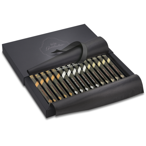 Die hochwertige Geschenkverpackung besticht mit ihrem eleganten und zugleich verspielten Design und einer besonders angenehmen Haptik. Nach dem Entfernen des eleganten Sleeve wird das Inlay mit einem edlen Satinband ausgezogen.
