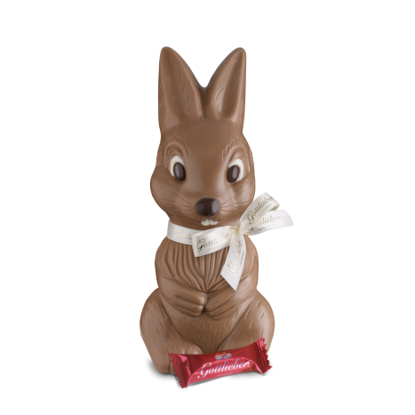 Unser süsser Osterhase «Lou» aus feiner Milchschokolade macht es sich mit seiner Praliné Mini-Hüppe gemütlich. Ein edles, handgefertigtes und zugleich feines Geschenk zu Ostern für Geniesser:innen, Schokoladenliebhaber:innen und all diejenigen, die einen besonderen Osterhasen suchen.
