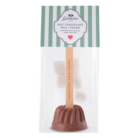 Die köstliche Gottlieber Mandel-Trinkschokolade am Stiel mit Mini-Marshmallows ist der ideale vegane Begleiter für die kalte Jahreszeit. Die Marshmallows sorgen für eine süsse Überraschung, die jeden Moment zu einem unvergesslichen Genuss macht.
