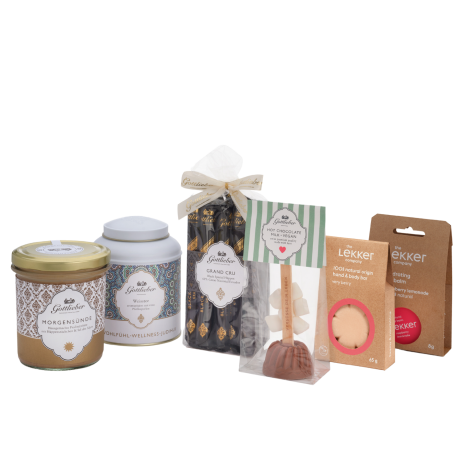 Tauchen Sie ein in die Welt des Genusses mit unserem exklusiven Schatzkistli! Diese liebevoll zusammengestellte Box vereint die besten veganen Gottlieber Köstlichkeiten mit zwei Produkten der niederländischen Firma The Lekker Company, die sich der Herstellung natürlicher und nachhaltiger Körperpflegeprodukte verschrieben hat.