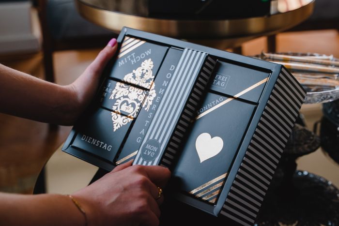 Verschenken Sie mit dem 7 Tage Genuss-Kalender eine Woche Genuss, Liebe und Spannung zugleich. Auch ideal für Paare, die sich gemeinsam überraschen lassen wollen.