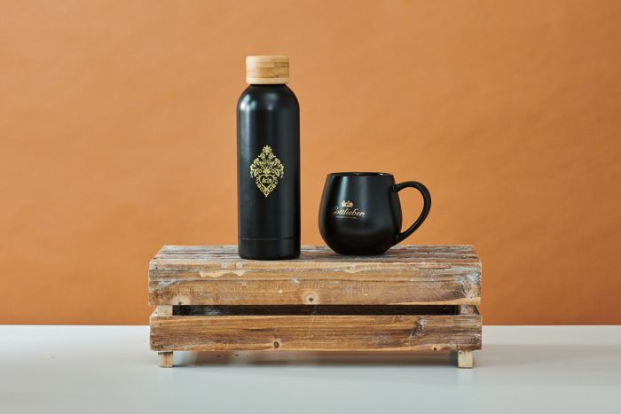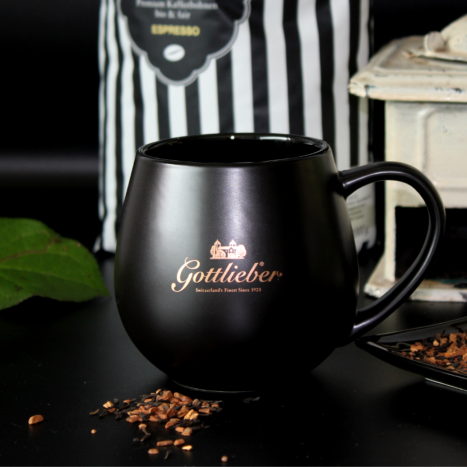 Erleben Sie ein stilvolles Trinkerlebnis mit unserer schwarzen Tasse in mattem Finish, verziert mit dem eleganten Gottlieber Logo in Gold. Diese hochwertige Tasse ist ein perfektes Accessoire für den täglichen Gebrauch im Büro oder zu Hause.
