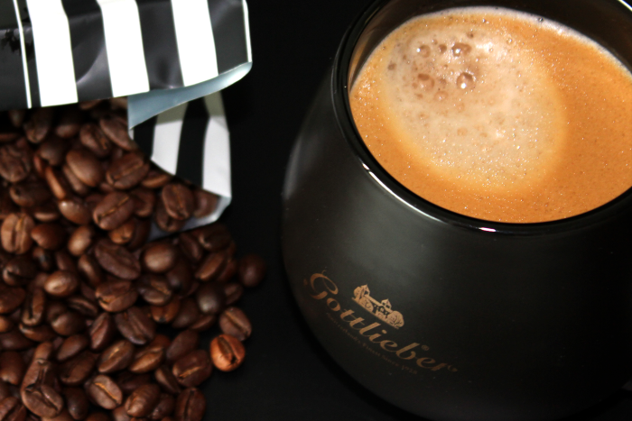 Die Tasse ist aus robustem Keramikmaterial gefertigt und verfügt über eine angenehme Griffigkeit, die ein bequemes Halten ermöglicht. Das schwarze matte Finish verleiht der Tasse ein modernes und zeitgemäßes Aussehen, während das goldene Gottlieber Logo einen Hauch von Luxus und Raffinesse hinzufügt.