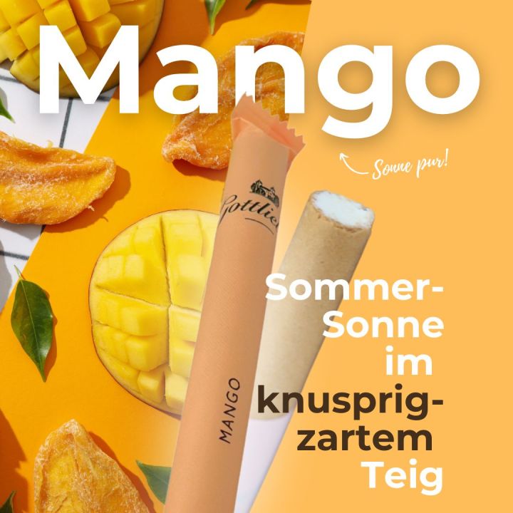 Ein Hauch Tropen in jedem Bissen – unsere knusprige Hüppe mit samtig-süsser Mangofüllung entführt in sonnige Gefilde. Die feine Kombination aus knusprig-zartem Teig und dem intensiv fruchtigen Aroma reifer Mangos macht diese Leckerei zum perfekten Snack für alle, die das Besondere lieben. Ideal für den Sommer – fruchtig, leicht und einfach zum Verlieben.