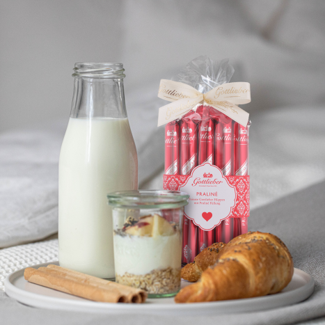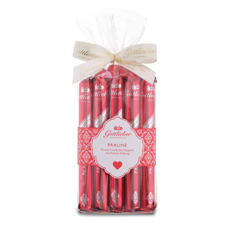 Eine herrlich süsse Überraschung für Menschen, die einem am Herzen liegen: Die beliebte Praliné Hüppe im romantischen Herz-Säckli.