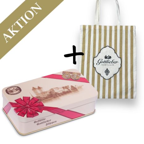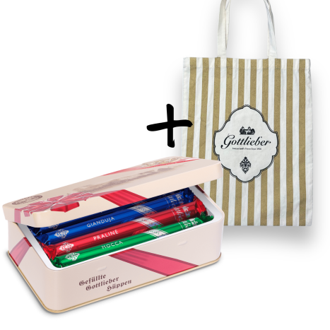 Exklusiv nur heute, am 8. März, erhalten Sie zu unserer beliebten Jubiläums-Schmuckdose den hochwertigen Gottlieber Stoffbeutel im Wert von CHF 24.90 als Geschenk dazu. Die Schmuckdose vereint feinste Gottlieber Hüppen in klassischer Mischung und steht für Genuss, Handwerk und Schweizer Tradition. Der stilvolle Stoffbeutel begleitet Sie nachhaltig durch den Alltag und setzt ein dezentes Zeichen für Qualität und Haltung.