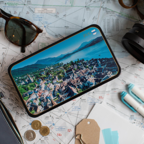 In der edlen Schmuckdose mit dem Zuger Sujet sind erlesene Gottlieber Hüppen der Traditionsmischung enthalten.