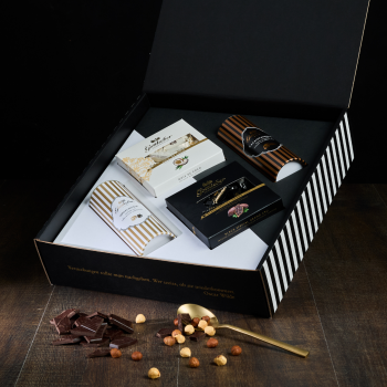 Edle Schmuckdose mit Praliné, Mocca und Gianduja-Hüppen