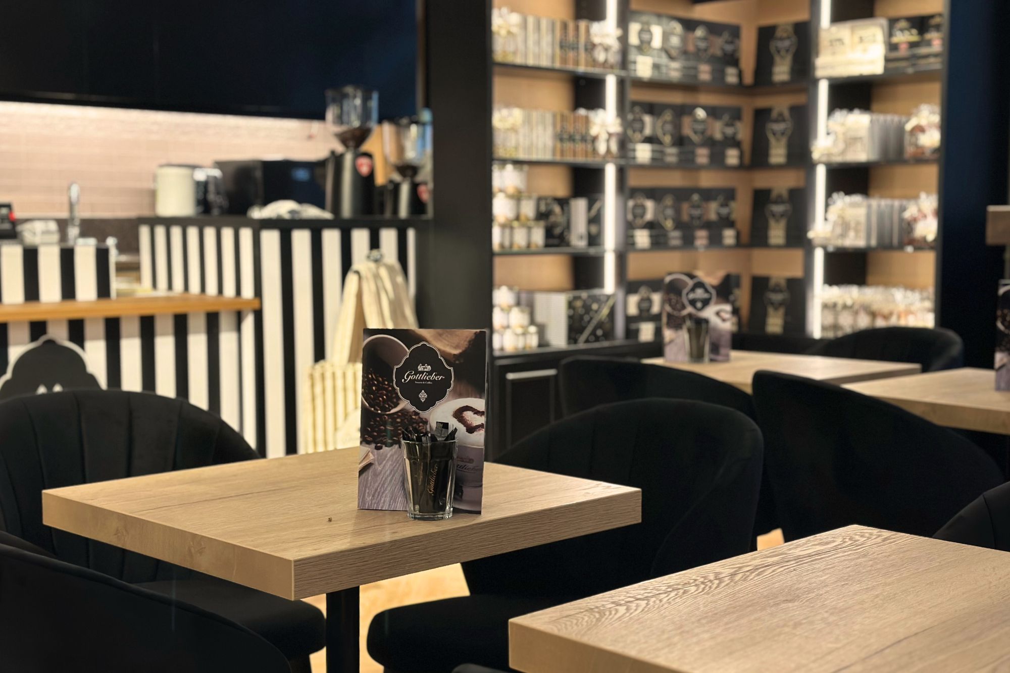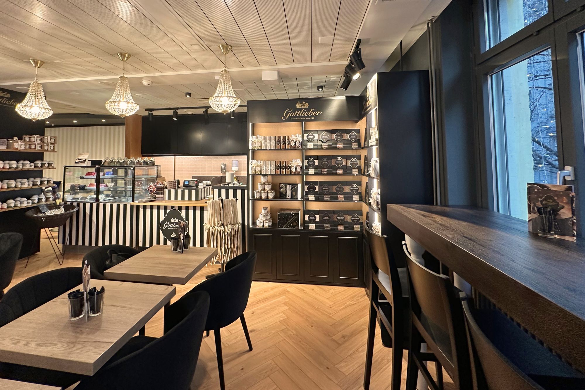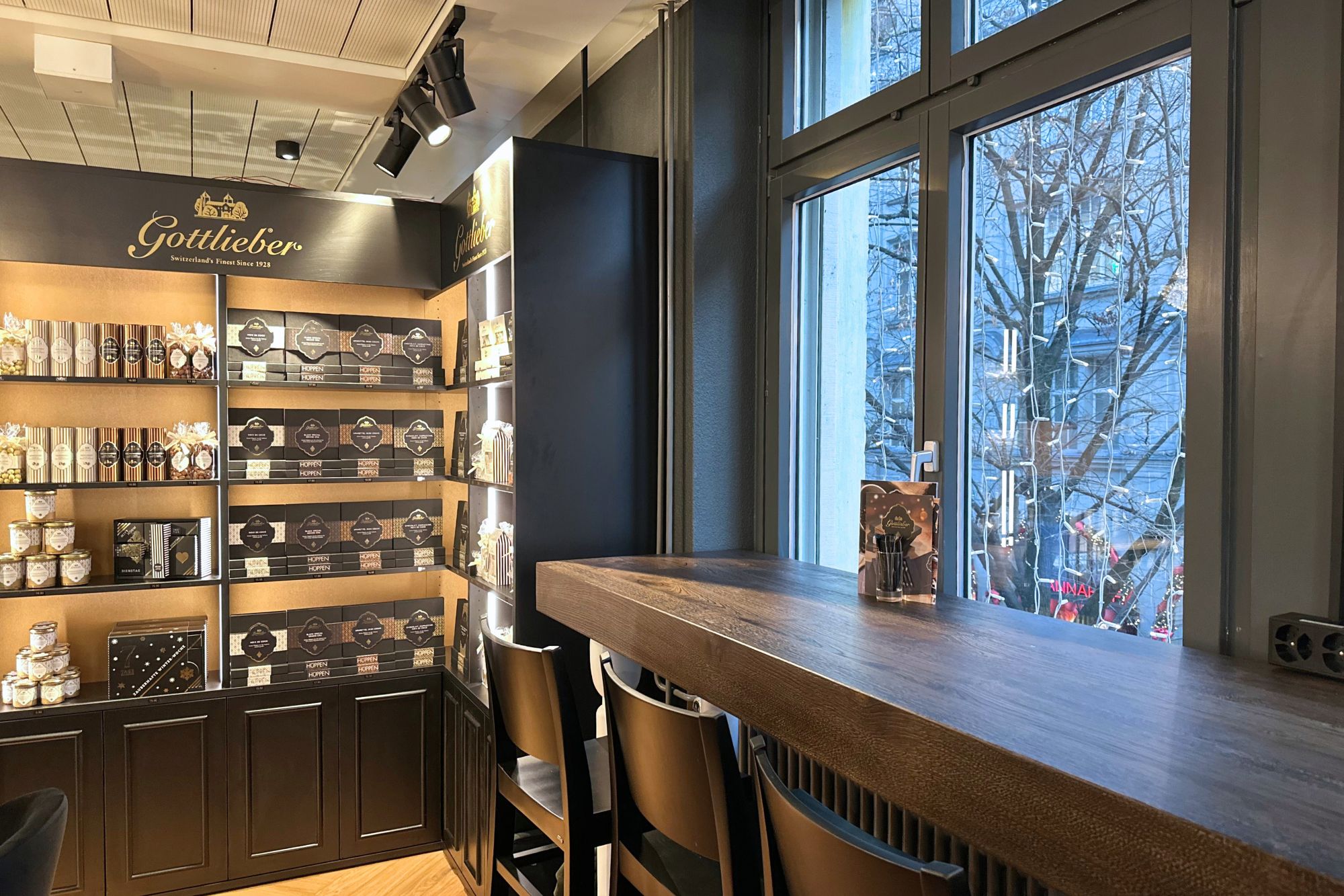 Zudem können Sie im integrierten «Gottlieber Shop» feinste Gottlieber Hüppen und Schokoladenspezialitäten wie die haus- & handgemachten Gottlieber Tartufi, den verführerischen Brotaufstrich «Morgensünde», Cacaomandeln, Haselnüsse sowie auserlesene Tees kaufen.