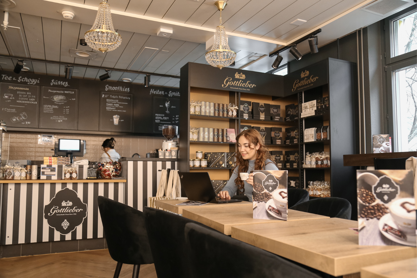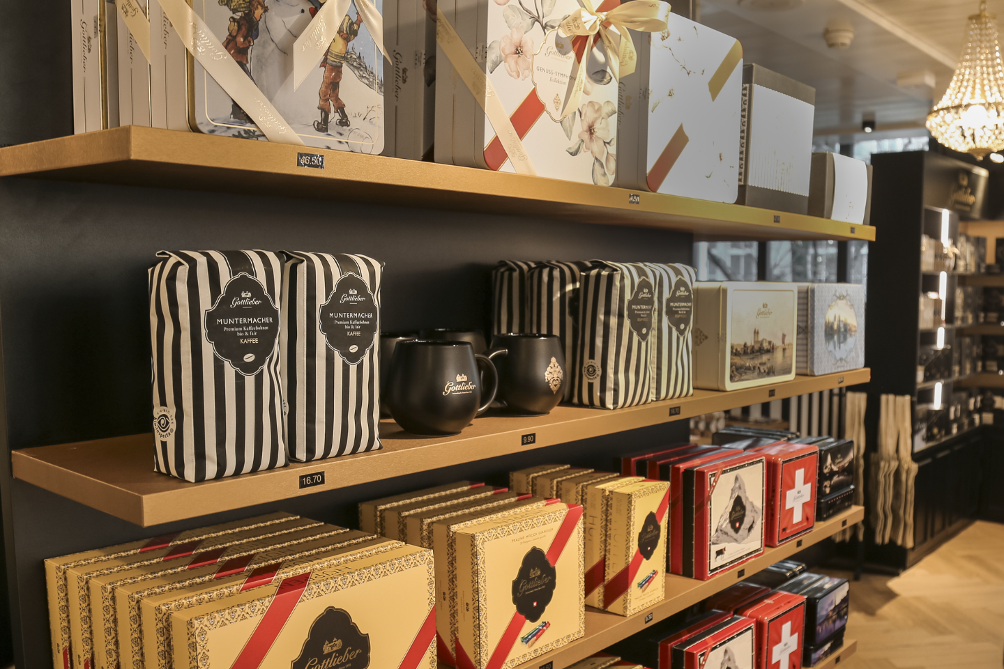 Zudem können Sie im integrierten «Gottlieber Shop» feinste Gottlieber Hüppen und Schokoladenspezialitäten wie die haus- & handgemachten Gottlieber Tartufi, den verführerischen Brotaufstrich «Morgensünde», Cacaomandeln, Haselnüsse sowie auserlesene Tees kaufen.