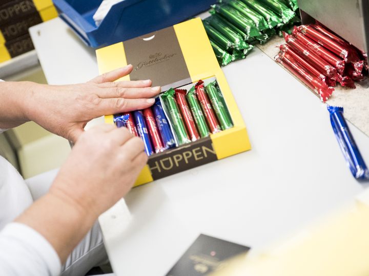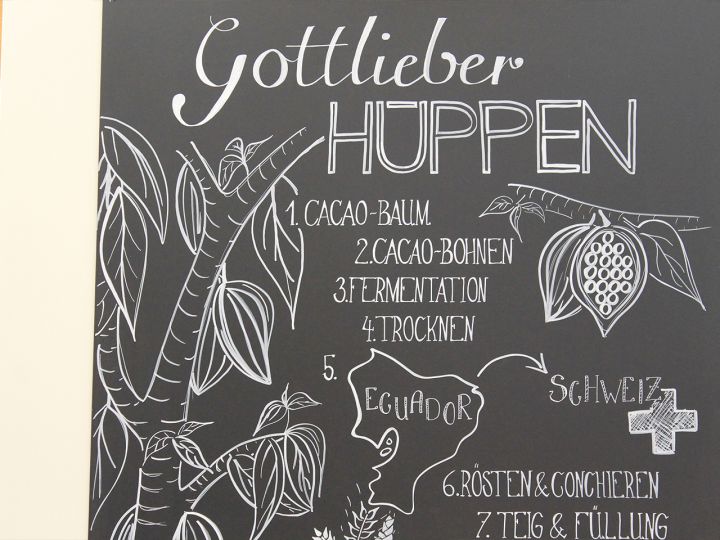 Wie früher werden in der Gottlieber Hüppen-Manufaktur die hauchzarten Crêpes nicht dicker als 0.7 mm einzeln gebacken und wie das Blatt einer wertvollen Havanna-Zigarre ganz vorsichtig und sorgfältig auch einzeln gerollt. Die einzigartige Kombination aus leichter, einzeln gebackener und knuspriger Hüppe und feinster Füllungen aus bester Schweizer Schokolade und zart schmelzenden Gourmet-Cremes schafft exklusive Genusserlebnisse.