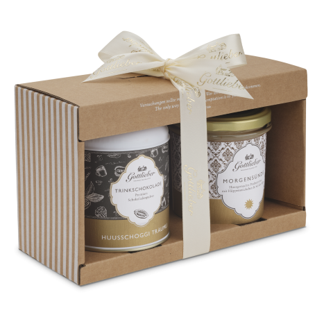 Our popular spread «Morning Delight» and the «Huusschoggi Träumli» drinking chocolate combine to form the perfect breakfast duo!