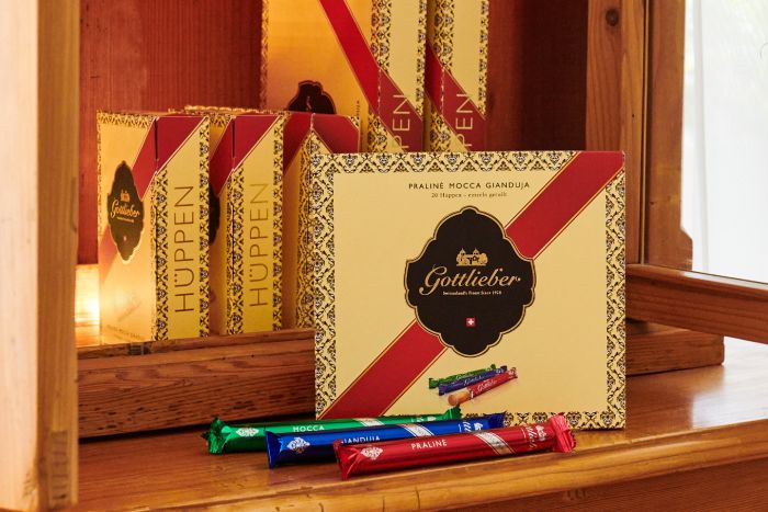 The pack contains 20 Gottlieber Hüppen of the traditional mix of praline, mocha and gianduja. For many years now, our traditional mix in red, green and blue has been popular with young and old alike and is by far Gottlieber's top-seller. Our Hüppen are a perfect companion to coffee, tea or a fine glass of wine. In a word, our traditional mix with praline, mocha and gianduja is the best composition Gottlieber has to offer. Try it and see for yourself!