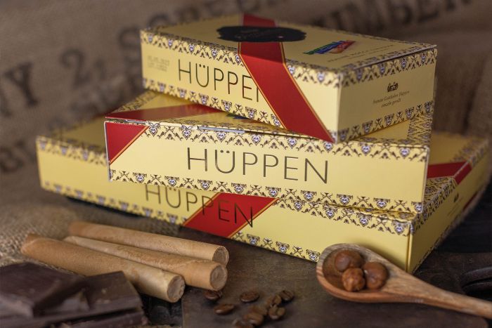 Get an impression of the distinctive packaging and our crispy Hüppen in our unboxing video. For corporate customers, we offer the option of personalizing the packaging as an employee or customer gift. More info.