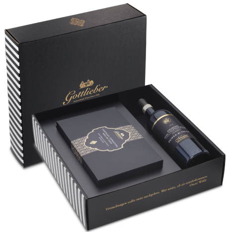 The high-quality gift packaging of the GRANDE impresses with its elegant and at the same time playful design and a very pleasant haptic. After removing the elegant sleeve, the inlay is pulled out with a noble satin ribbon.