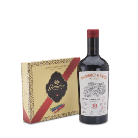 The traditional Hüppen assortment (vegan and palm oil free) accompanied by a Spanish 2019 Whisky-Wine Tempranillo aged 18 months in Whisky barrels IGP Castilla y Leon.