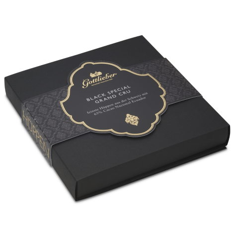 Our Black Special Grand Cru filling with more than 60% cocoa makes the perfect Hüppen for true lovers of dark chocolate!