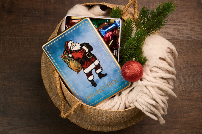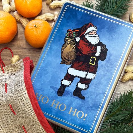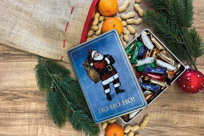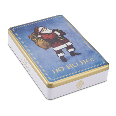 Our noble decorative box with «Santa Claus» motif delights young and old during the Advent season and at Christmas. The decorative box is filled with eight varieties of the finest Gottlieber mini Hüppen: Praline, mocha, gianduja, vanilla, caramel, almond, noix de Coco and black special Grand Cru.