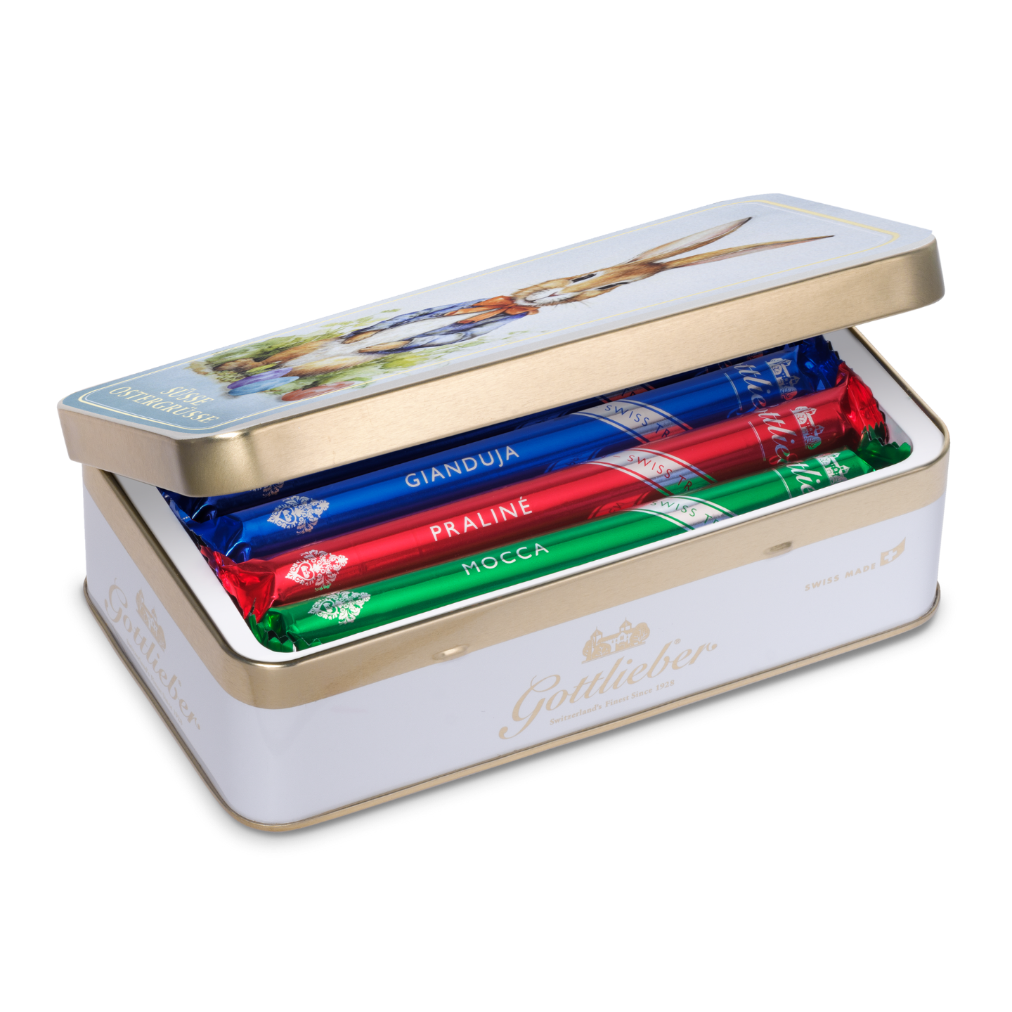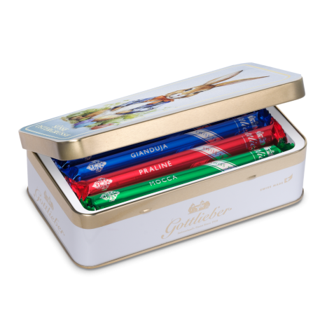 Our «Felix» goes perfectly with his «Amélie» and the «Happy Easter» decorative tin, which is adorned with a sweet Easter chick. They are also available together in our Collectors Edition: just the thing for all collectors or lovers of Gottlieber Hüppen.