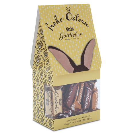 The delightful little something for every Easter basket: delicious Gottlieber mini Hüppen from the classic mix (vanilla, caramel, almond) in a sweet Easter design.