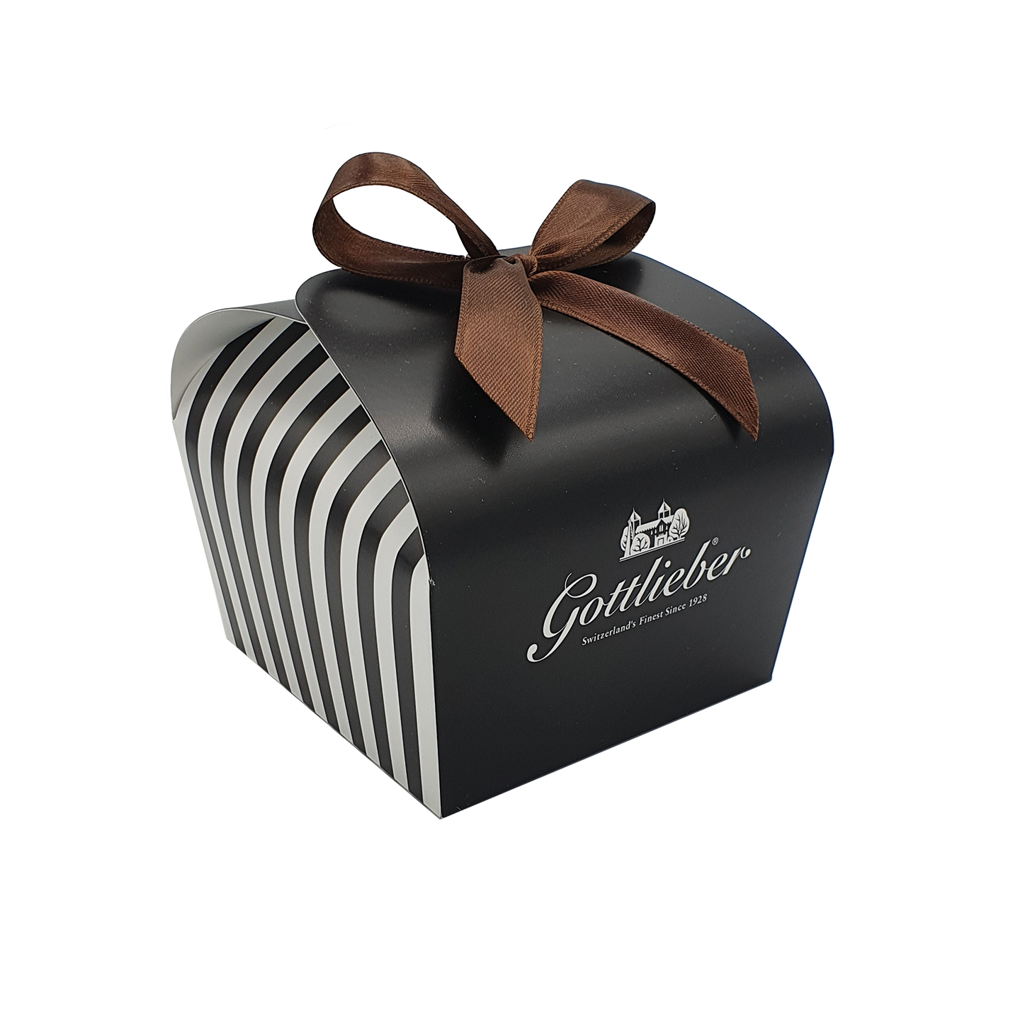 A perfect little gift. Surprise with the elegant gift box in the new black and white stripe design with noble bow.