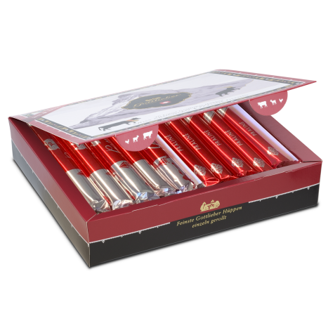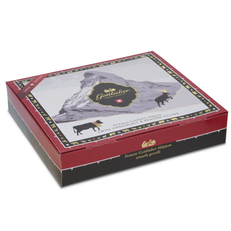 Our «Swiss Line» – authentically Switzerland! For the first time ever, with a mix of our two delicious Hüppen fillings chocolait (milk chocolate) and praline.