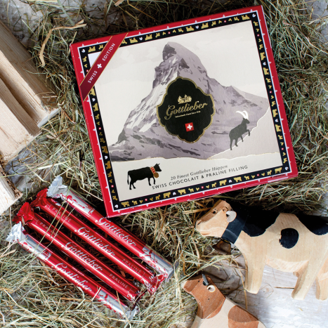 In the centre of this Swiss Edition, you'll see a cow and an ibex peacefully scaling a cliff, right in front of the world-famous Matterhorn. The details are meticulously finished with gold foil. The result is a traditional Swiss gift with a touch of elegance.