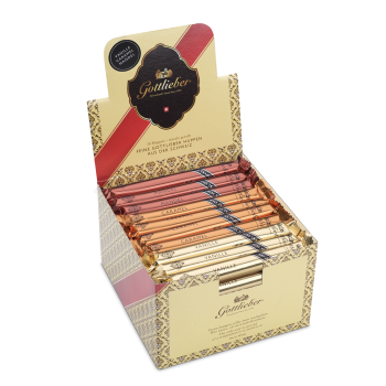 After all this time, Gottlieber Hüppen are still individually baked in our factory as wafer-thin crepes, rolled up as painstakingly as a Havana cigar and filled with one of 14 chocolate or gourmet creams produced in-house in Gottlieben. An exquisite delicacy known all over the world. Have you tried all the variations of our Hüppen?