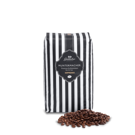 With our delicious Gottlieber organic & fair trade premium gourmet coffee mixture (beans) every espresso tastes like it was made by a barista. With every sip you can enjoy nuances of toast and dark chocolate. From the first moment you will notice on the palate spicy aromas. The high-quality Central and South American Arabica and the Indian Robusta beans have a low acidity and a medium to dark roasting level. The «Muntermacher» is specially refined and mixed for Gottlieber Spezialitäten AG in the traditional drum roasting process in St. Gallen.