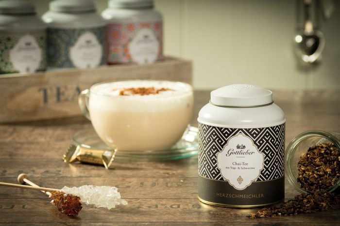 Yogi tea and Assam GFOP black tea form the basis of our chai tea «Heartwarmer». The yogi tea also consists of cinnamon, cloves, ginger and cardamom. The Assam GFOP black tea is very aromatic and has subtle notes of honey. This traditional Indian spice-based drink is best enjoyed with milk.