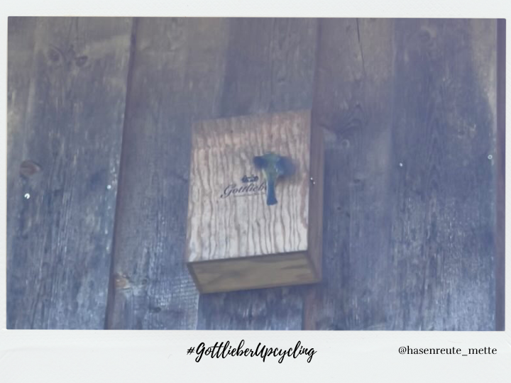 Who's fluttering off to their new home? We hadn't thought of this idea before: Our Wooden Box as a birdhouse! So that the feathered friends have a nice place to live.